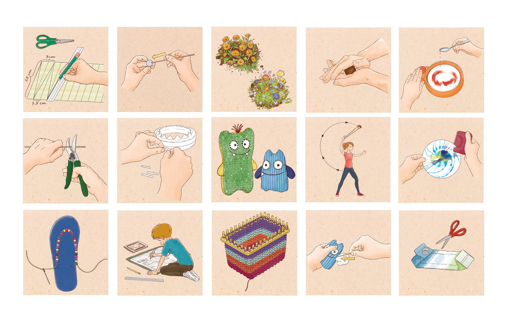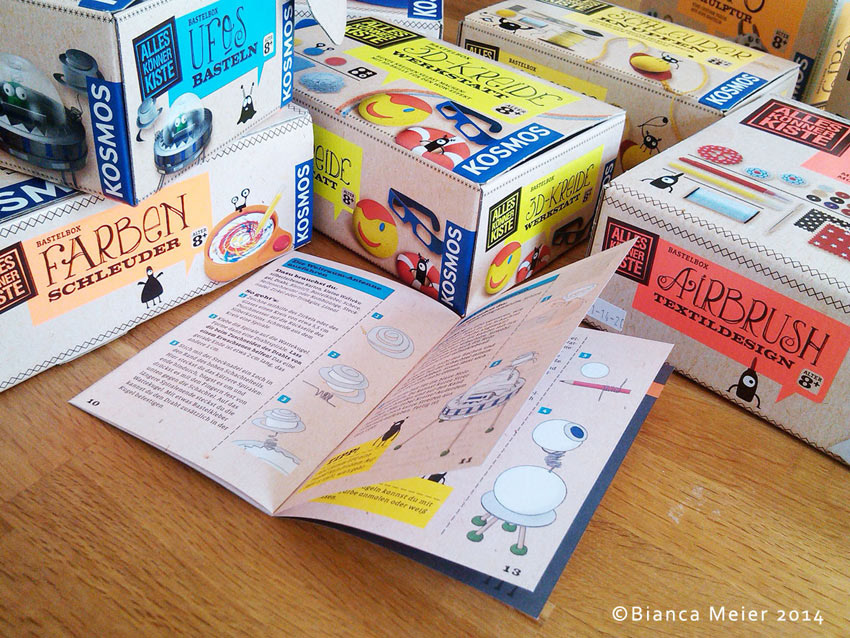 Seit 2013 illustriere ich die Anleitungen für die Kosmos Alleskönnerkisten. Seitdem sind über 1000 Illustrationen entstanden, die ich digital gezeichnet und coloriert habe. Hier zeige ich nur einige Beispiele der Illustrationen und der Bastelsets.